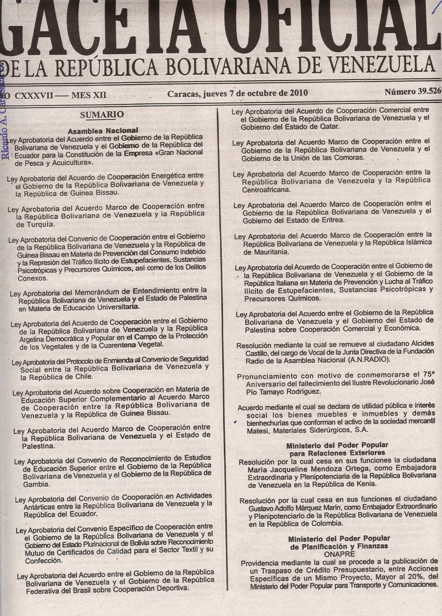 SUMARIO GO 39.526 del 7OCT2010 08/10/2010 Ricardo A. Carbonell Cornejo Fichas SUMARIO GO 39.526 del 7OCT2010 Compártelo Twitter Facebook LinkedIn Correo electrónico Whatsapp