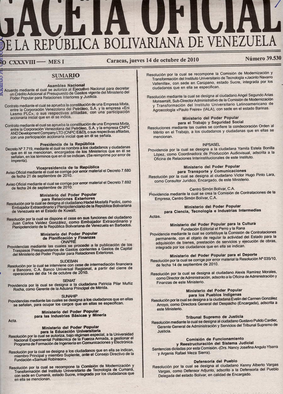SUMARIO GO 39.530 del 14OCT2010 15/10/2010 Ricardo A. Carbonell Cornejo Fichas SUMARIO GO 39.530 del 14OCT2010 Compártelo Twitter Facebook LinkedIn Correo electrónico Whatsapp