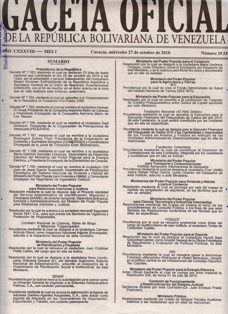 SUMARIO GO 39.539 del 27OCT2010 28/10/2010 Ricardo A. Carbonell Cornejo Fichas SUMARIO GO 39.539 del 27OCT2010 Compártelo Twitter Facebook LinkedIn Correo electrónico Whatsapp