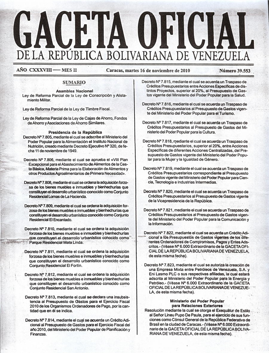 SUMARIO GO 39.553 del 16NOV2010 18/11/2010 Ricardo A. Carbonell Cornejo Fichas SUMARIO GO 39.553 del 16NOV2010 Compártelo Twitter Facebook LinkedIn Correo electrónico Whatsapp