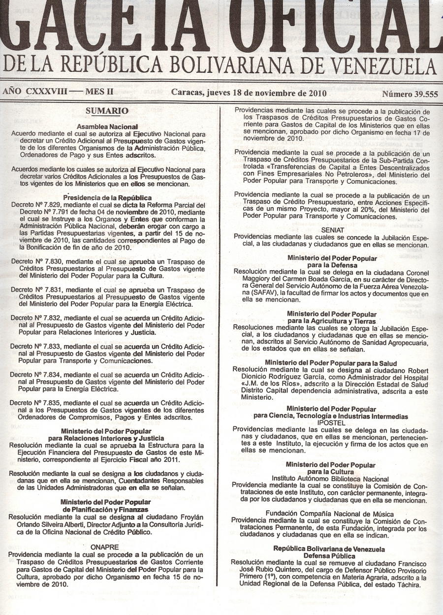 SUMARIO GO 39.555 del 18NOV2010 19/11/2010 Ricardo A. Carbonell Cornejo Fichas SUMARIO GO 39.555 del 18NOV2010 Compártelo Twitter Facebook LinkedIn Correo electrónico Whatsapp
