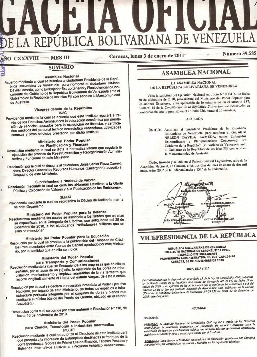 SUMARIO GO 39.585 del 3ENE2011 04/01/2011 Ricardo A. Carbonell Cornejo Fichas SUMARIO GO 39.585 del 3ENE2011 Compártelo Twitter Facebook LinkedIn Correo electrónico Whatsapp
