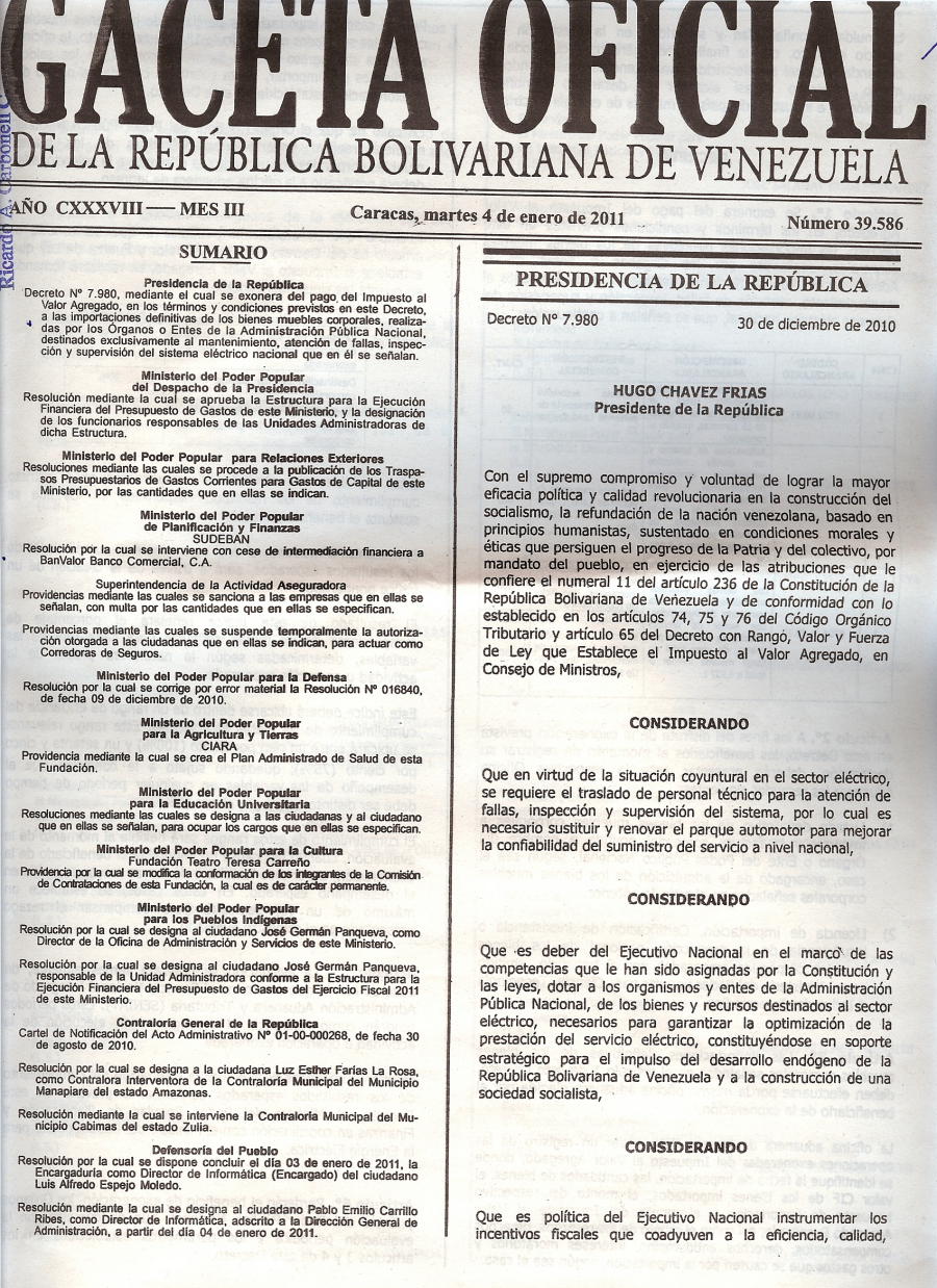 SUMARIO GO 39.586 del 4ENE2011 05/01/2011 Ricardo A. Carbonell Cornejo Fichas SUMARIO GO 39.586 del 4ENE2011 Compártelo Twitter Facebook LinkedIn Correo electrónico Whatsapp