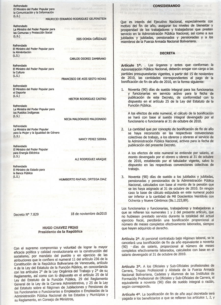 TEXTO del Decreto Nº 7.829 del 18NOV10, CRONOGRAMA Bonificación Fin Año 2010 Administración Pública Nacional Reforma Parcial 19/11/2010 Ricardo A. Carbonell Cornejo Fichas CRONOGRAMA Bonificación Fin Año 2010 Administración Pública Nacional Reforma ParcialTEXTO del Decreto Nº 7.829 del 18NOV10 Compártelo Twitter Facebook LinkedIn Correo electrónico Whatsapp