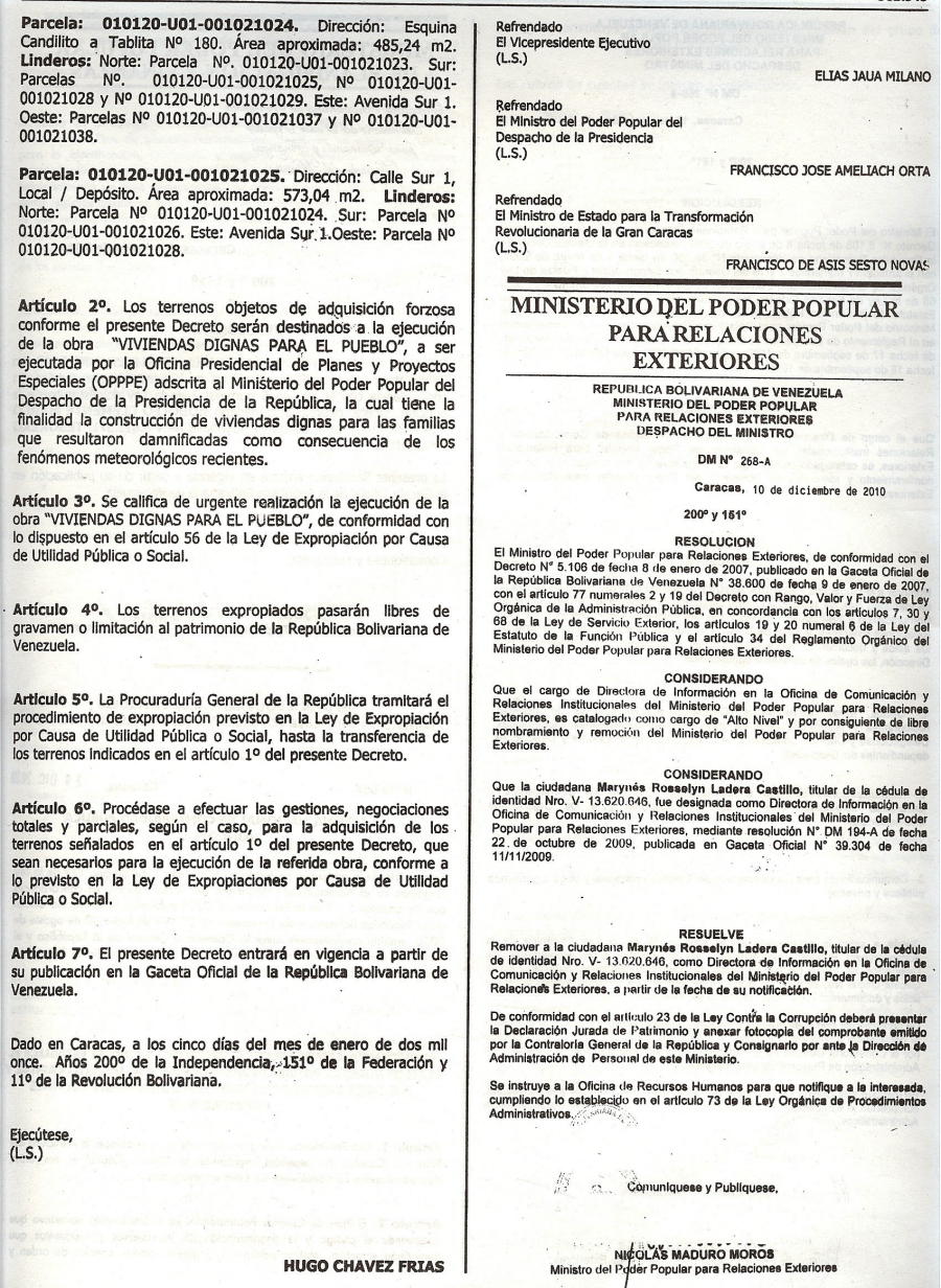 TEXTO del Decreto Nº 7.981 del 6ENE11, Expropiación 20 Parcelas de Terreno, Caracas 07/01/2011 Ricardo A. Carbonell Cornejo Fichas CaracasExpropiación 20 Parcelas de TerrenoTEXTO del Decreto Nº 7.981 del 6ENE11 Compártelo Twitter Facebook LinkedIn Correo electrónico Whatsapp Comments (2) y las del Cementerio del Este??? y las del Cementerio del Este??? Los comentarios están cerrados.