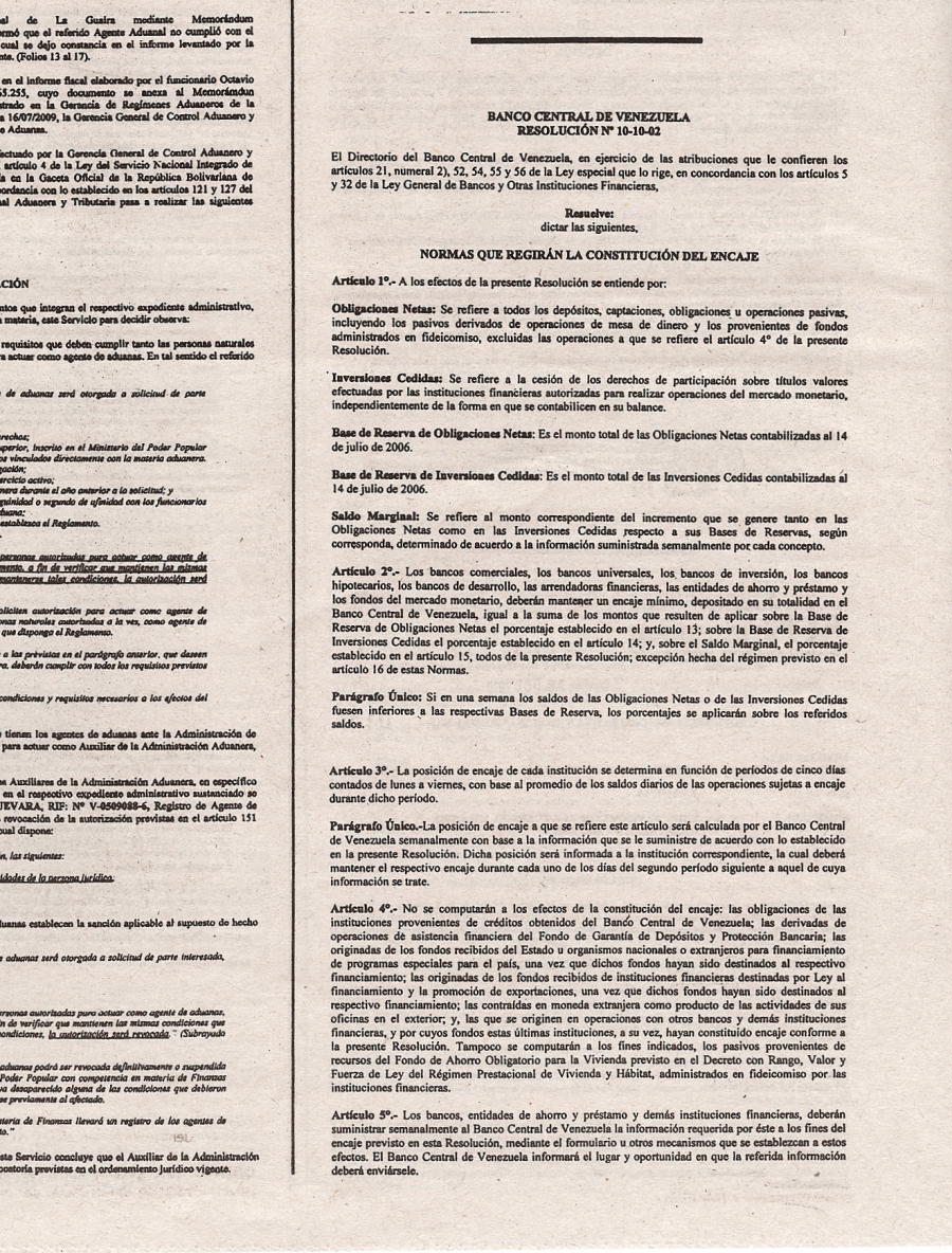 TEXTO Normas Encaje Res BCV 10-10-02 27/10/2010 Ricardo A. Carbonell Cornejo Fichas TEXTO Normas Encaje Res BCV 10-10-02 Compártelo Twitter Facebook LinkedIn Correo electrónico Whatsapp