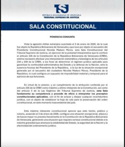 Ver aquí el TEXTO de Sentencia de la Sala Constitucional del Tribunal Supremo de Justicia asumiendo funciones que corresponden a otros poderes públicos, e interpretando la constitución nacional para definir el régimen jurídico aplicable, sin cumplir con los extremos previstos en la misma constitución.